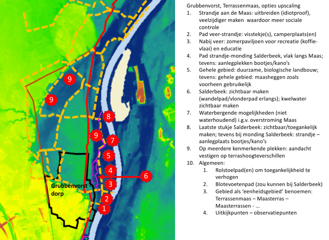 Daarbij is een afstemming met andere doelen en projecten aan beide zijden van de Maas van belang. Er speelt de komende jaren in Venlo, Lottum, Lomm en Velden heel veel. Het is belangrijk dat wij daar voor Grubbenvorst passende ideeën bij naar voren brengen.